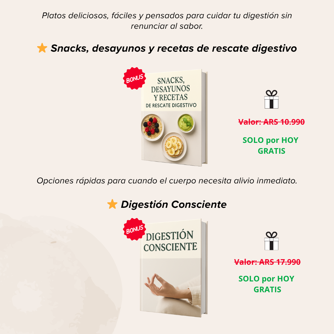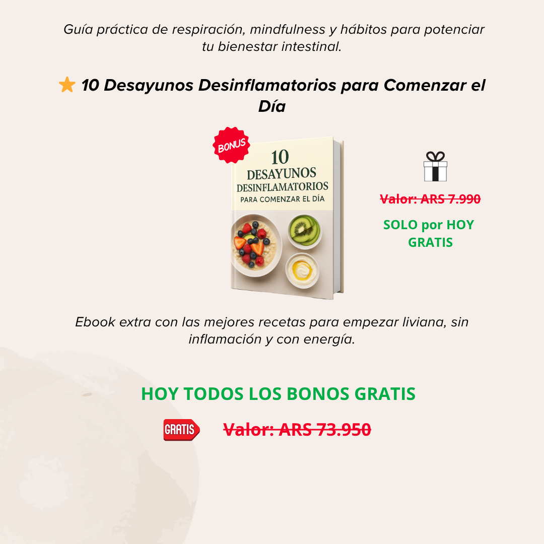 Todas las recetas y rutinas están pensadas para reducir la fermentación intestinal, calmar la inflamación y favorecer el equilibrio digestivo.